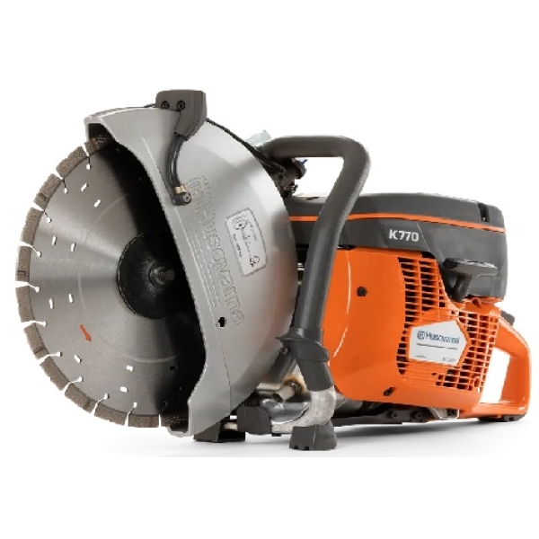 A Husqvarna K 770 é uma cortadora manual a gasolina de 74 cc (3,7 kW) e 10 kg, ideal para cortes em betão, asfalto e alvenaria até 125 mm de profundidade.